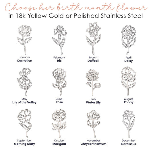 Birth Month Flower Custom Name Necklace Gift For Daughter