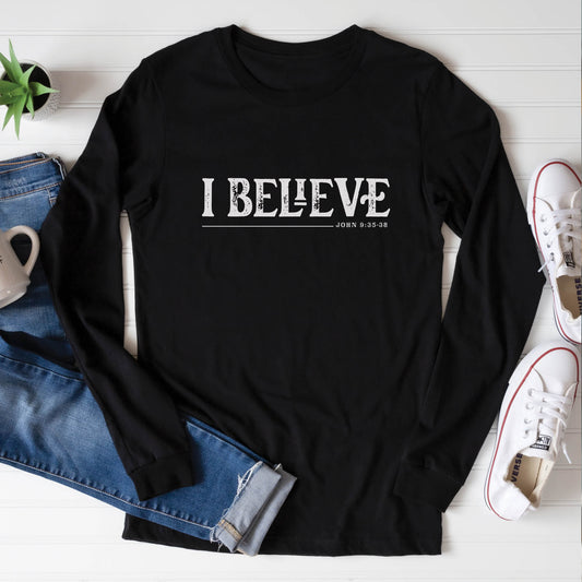 I BELIEVE John 9:35-38 - Christian Unisex Long Sleeve Shirt