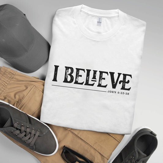 I BELIEVE - John 9:35-38 - Men's Christian T-Shirt