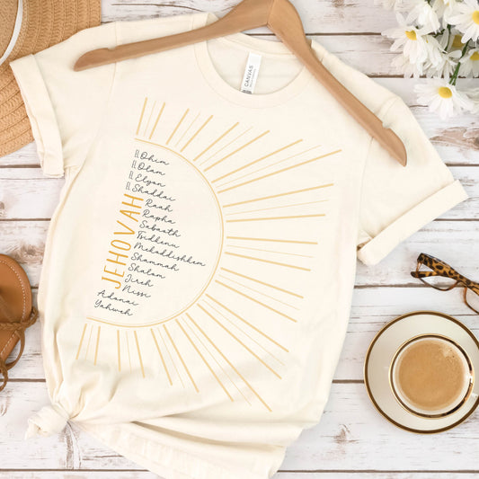Often times starting with JEHOVAH, meaning "The Relational God", points to God's ability to keep covenants / promises, His desire to be in relationship with us and us in Him, His ability to provide, to heal, to always be there, and MUCH more. Whatever the present need, God reveals Himself as the one who is able to meet and exceed it. These vintage blackletter and list style design t-shirts bring the living word of God and the reality of Jesus even more alive in us!