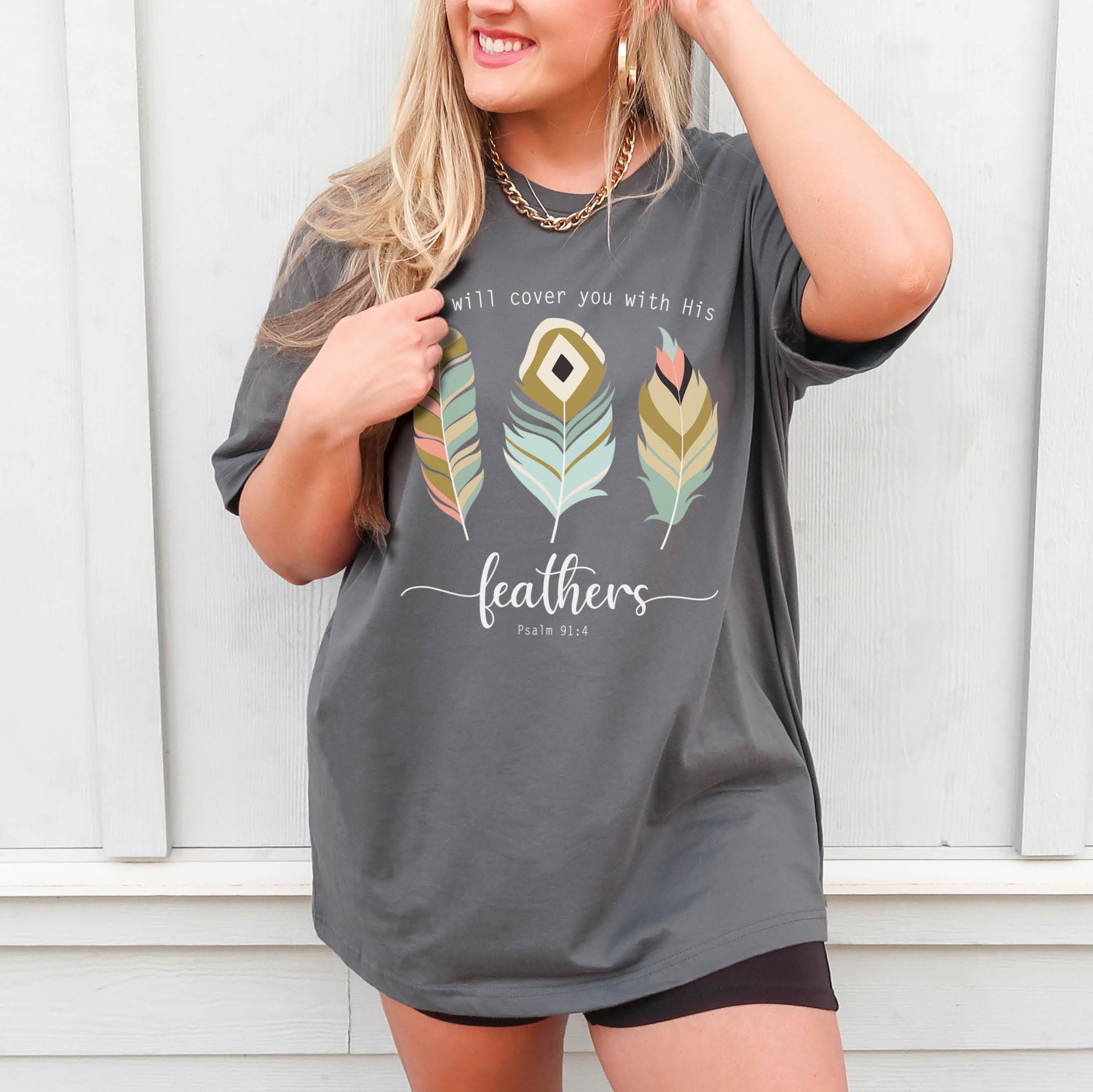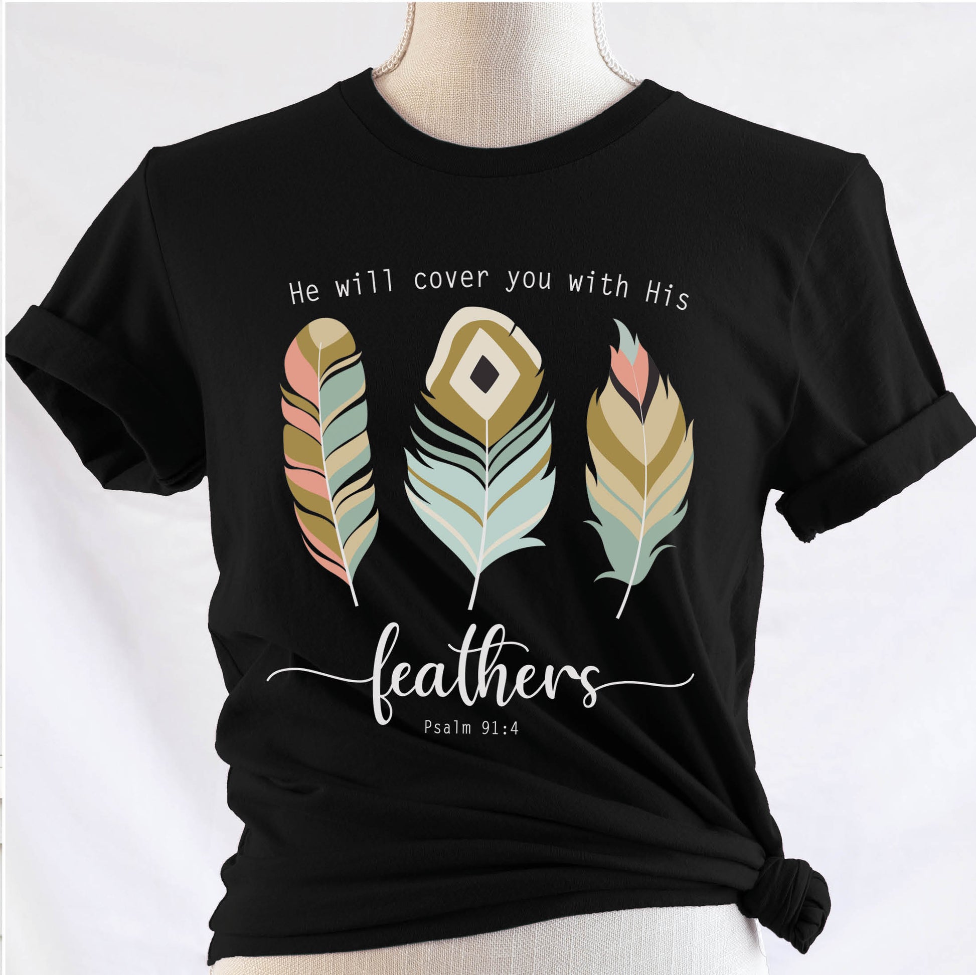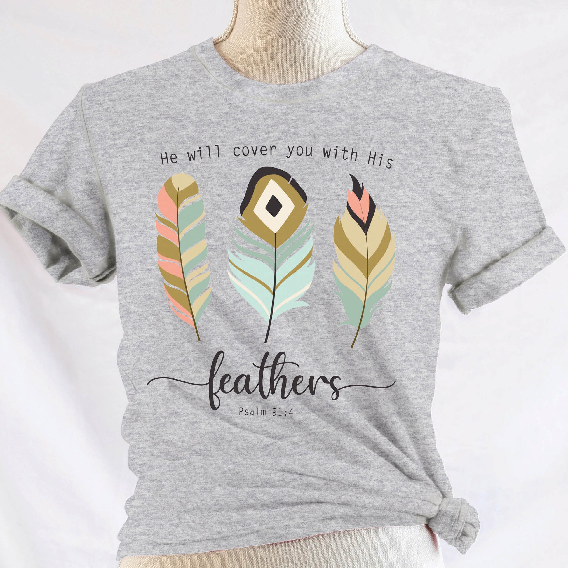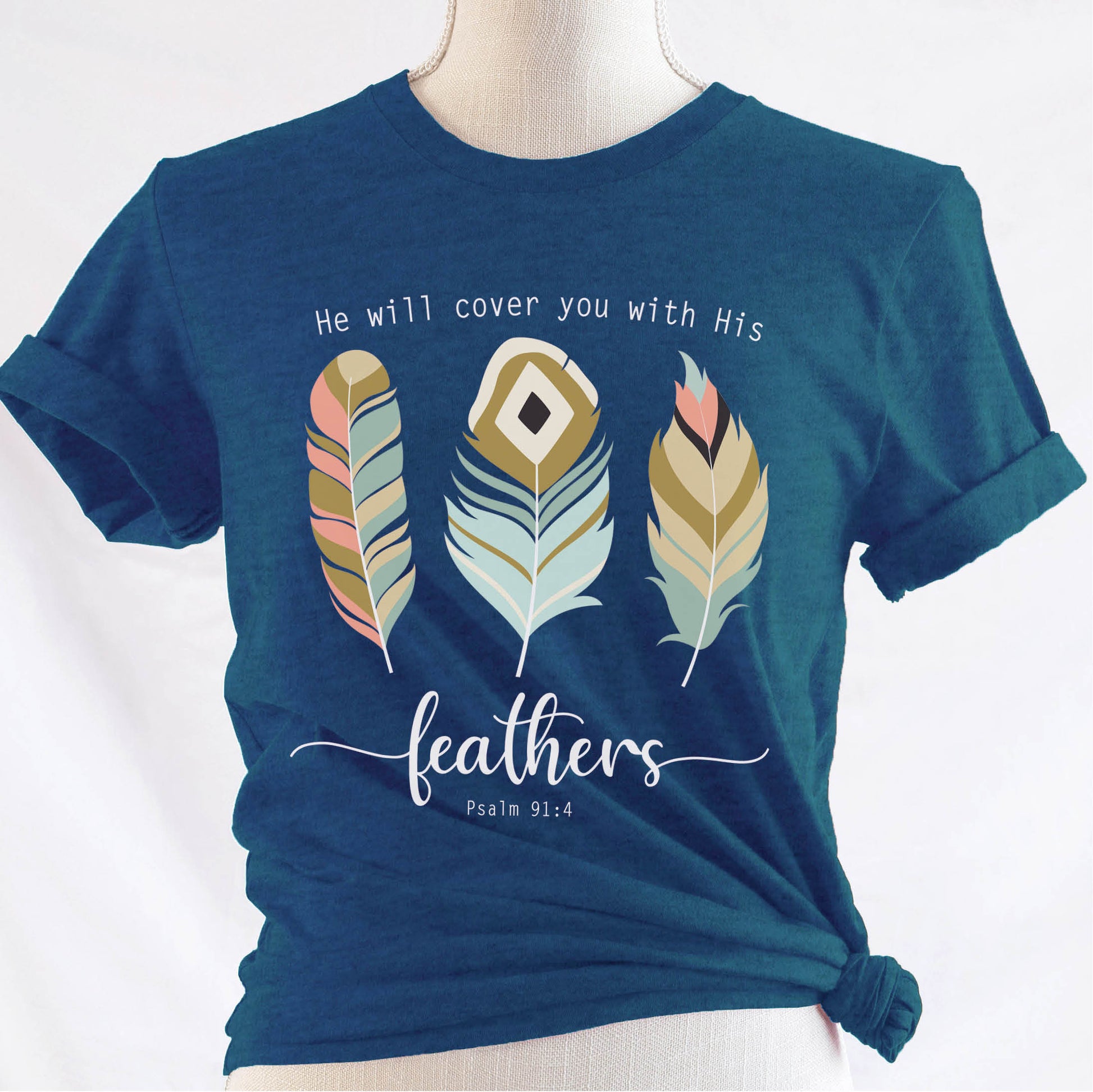 This lovingly designed super soft unisex fit Women's Christian t-shirt features neutral boho feathers design with "He Will Cover You With His Feathers - Psalm 91:4" bible verse scripture. What a great way to express your faith, and also makes the perfect gift for faith-filled mom, wife, sister, daughter or woman of God in your life!
